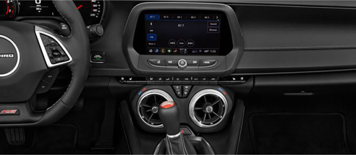 Since this is the ultimate Camaro available at the moment, you'll find a lot of features not available on the base model. You get an eight-way power driver's seat with memory, cruise control, heated Recaro front seats and a heated steering wheel, wireless charging, a 24-color ambient lighting system, keyless entry, a power trunk release, and a head-up display. You also get forward collision detection, blind-spot monitoring with lane change alert and rear cross-traffic alert, and rear parking sensors. A power sunroof is available on the options list.33p
