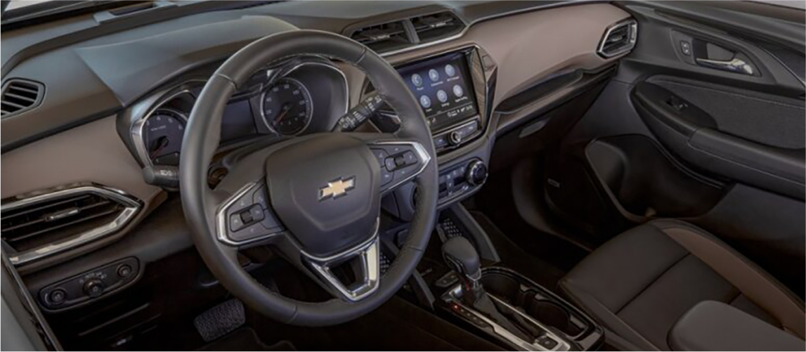 Cheap plastics are liberally used for the inside of the Trailblazer, though inventive design means it doesn't look inexpensive. Chevrolet also makes quite a few upholstery options available, though true variety only exists on higher trims. For the LS and LT, either Jet Black cloth upholstery or a combination of Jet Black and Medium Ash Grey can be selected. On the LT, leatherette upholstery options in the same colors are additionally available. The Activ makes two Jet Black combinations with either Almond Butter or Arizona accents as standard. The RS is available exclusively with Jet Black leatherette and cloth upholstery with red accents.