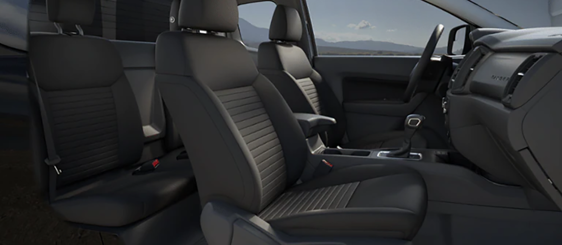 The base XL has Ebony cloth as standard. The quality can be improved by adding premium Ebony cloth or vinyl. The XLT comes standard with premium cloth in either Ebony or Medium Stone. The Lariat comes with a full leather interior, also in Ebony or Medium Stone. The Lariat also includes a leather-wrapped steering wheel and shifter.