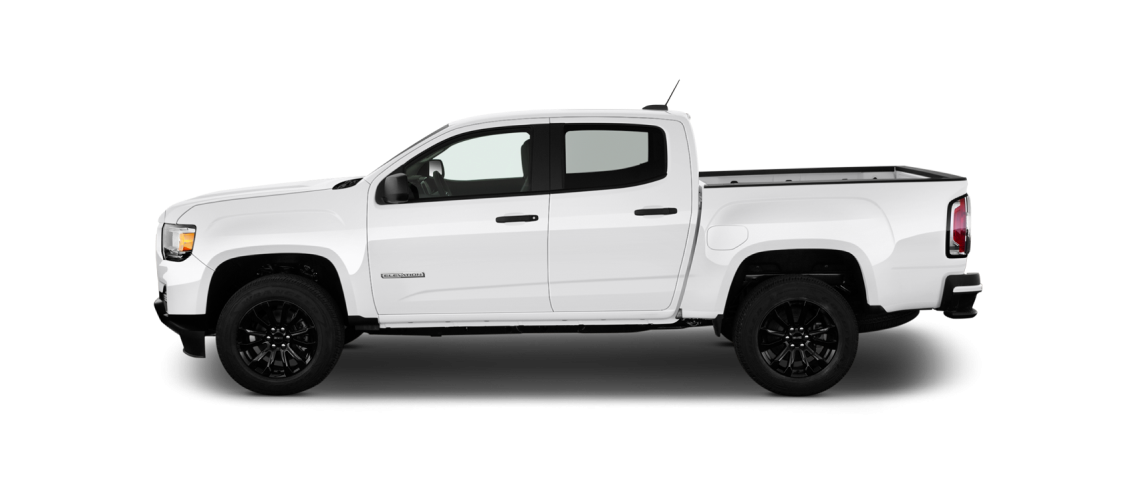 Available as an Extended Cab or Crew Cab with two box sizes, the 2021 GMC Canyon has a length of 212.4 inches, a width of 74.3 inches (excluding the mirrors), a 128.3-inch wheelbase, and a height of at least 70.3 inches, going up to 70.7 inches on some derivatives. With the long box, the Crew Cab's wheelbase grows to 140.5 inches and the length increases to 224.6 inches.