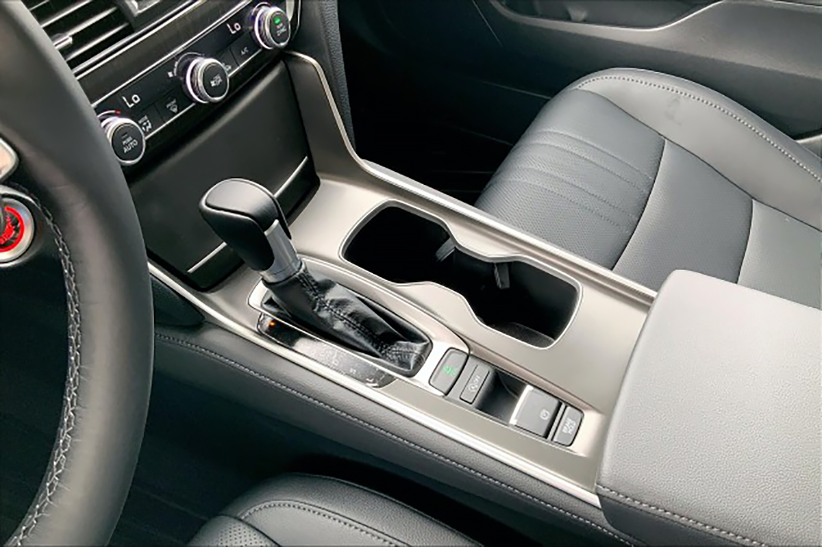 Usually, we'd start with the viewpoint from the driver's seat, but a highlight of the Honda Accord's cabin is its spaciousness, in particular the over 40 inches of legroom for rear-seat passengers. As proven in our Honda Accord review, the positioning of the hybrid model's battery doesn't impinge on passenger space. There's a lot to like in front, though, as the Accord's cabin is attractively finished, the seats are comfortable, and there aren't any serious quirks to adjust to. It's not the most imaginative design, but that isn't a great concern in this segment. All models ship with equipment like dual-zone automatic climate control, push-button ignition, and adaptive cruise control, while upper trims boast amenities like a 12-way power-adjustable driver's seat, heated seats, and an auto-dimming rearview mirror.