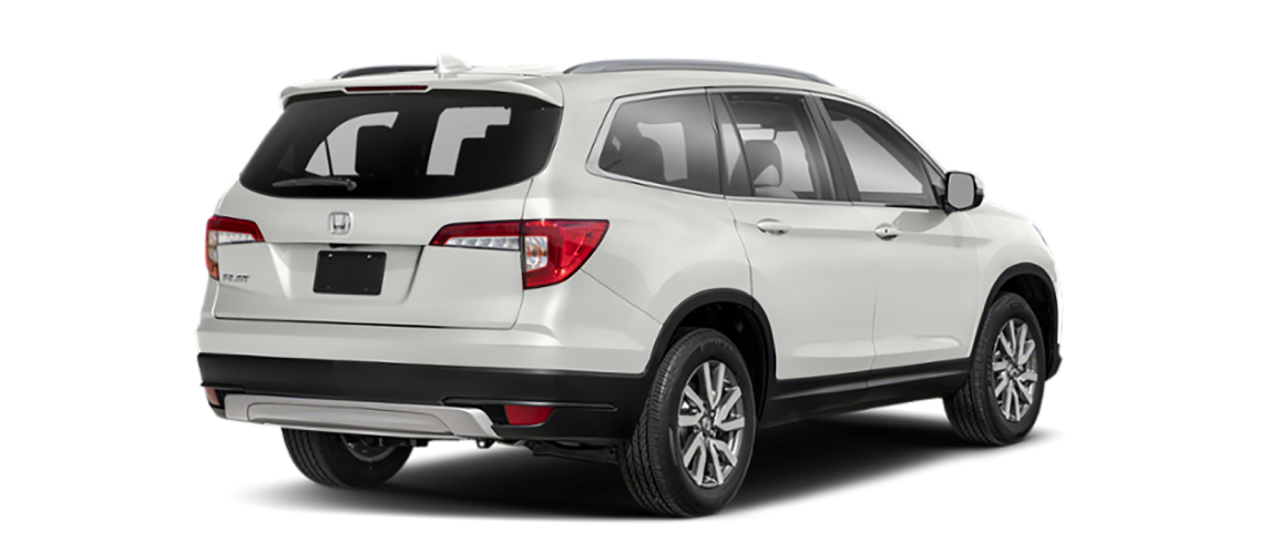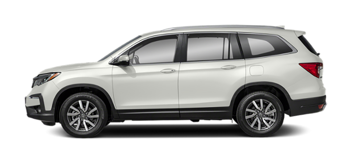 The 2021 Honda Pilot is classified as a midsize SUV in terms of dimensions, measuring in with a total length of 196.5 inches and rolling on a 111-inch wheelbase. It stands 70.6 inches tall and is 78.6 inches wide. The track is 66.3 inches front to back, and there's a useful 7.3 inches of ground clearance, enough for most suburban obstacles. Since it's an SUV, it would be worth mentioning its approach and departure angle of 19.7/20.8 degrees. The lightest Pilot is the 2WD LX, which weighs in at 3,982 lbs, while the heaviest is the Black Edition at a weighty 4,321 lbs.